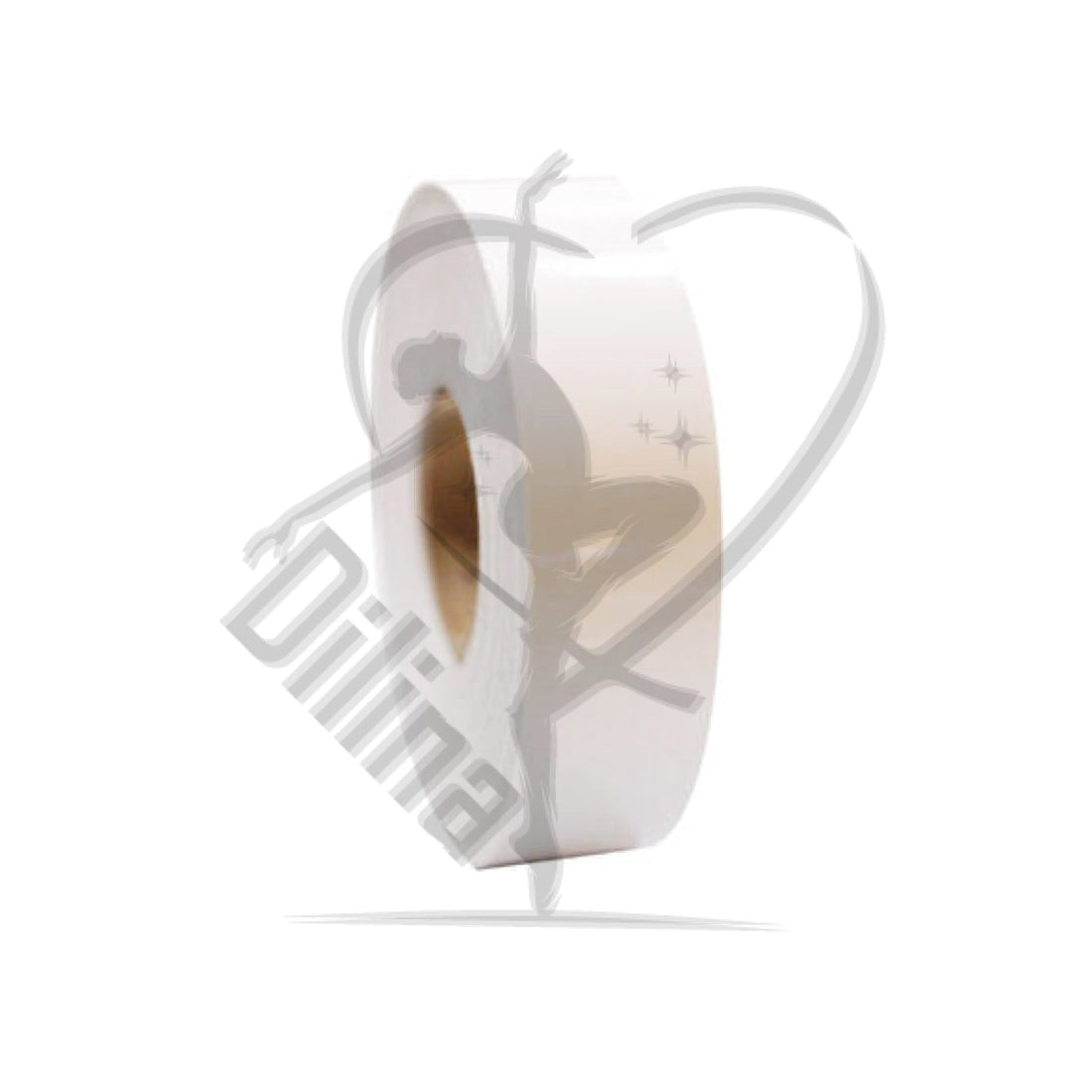 The adhesive tape is supported by a paper film, so for this reason we recommend you cut at 1 metre intervals and apply it to your hoop separating the adhesive film from the paper gradually.