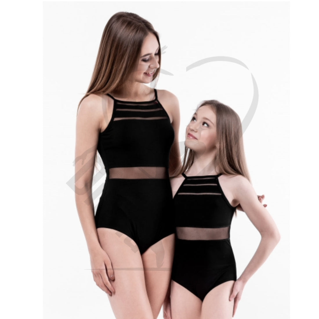 The leotard with neat straps has a choreographic classic neckline in the back.