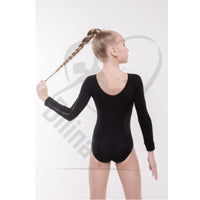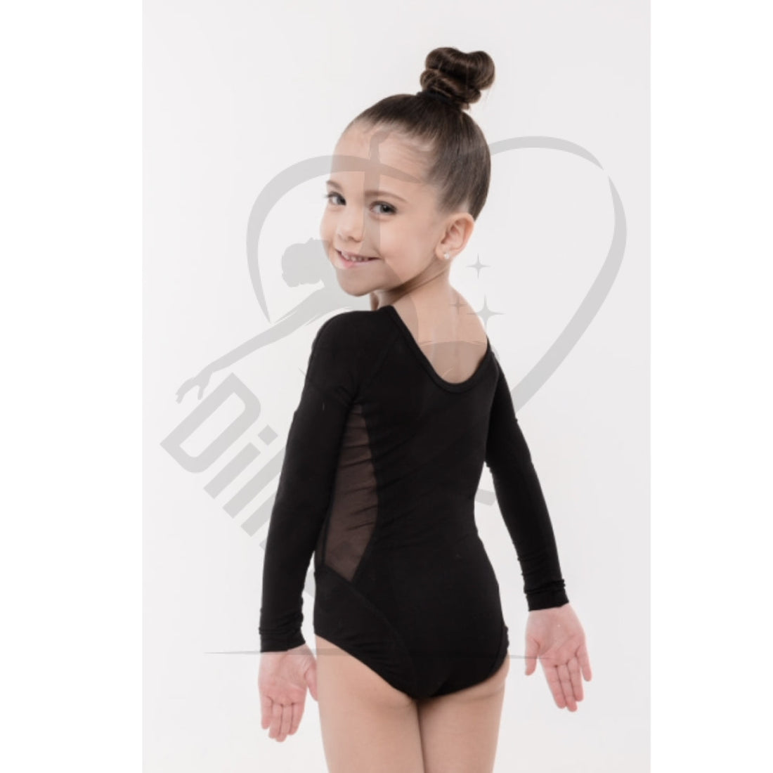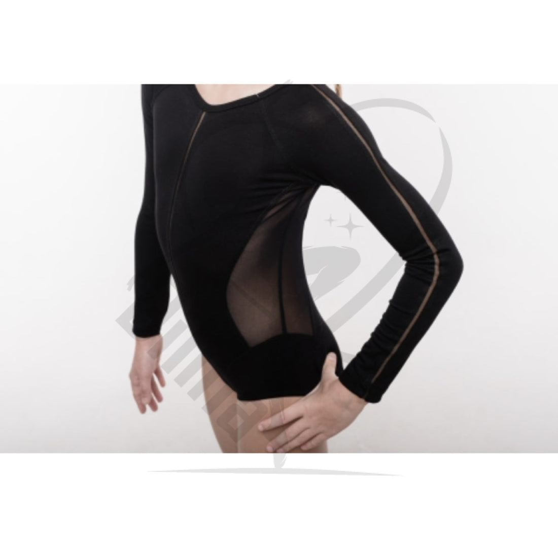 Grase Long Sleeve Black Leotard With Knitted Fabric Sleeves